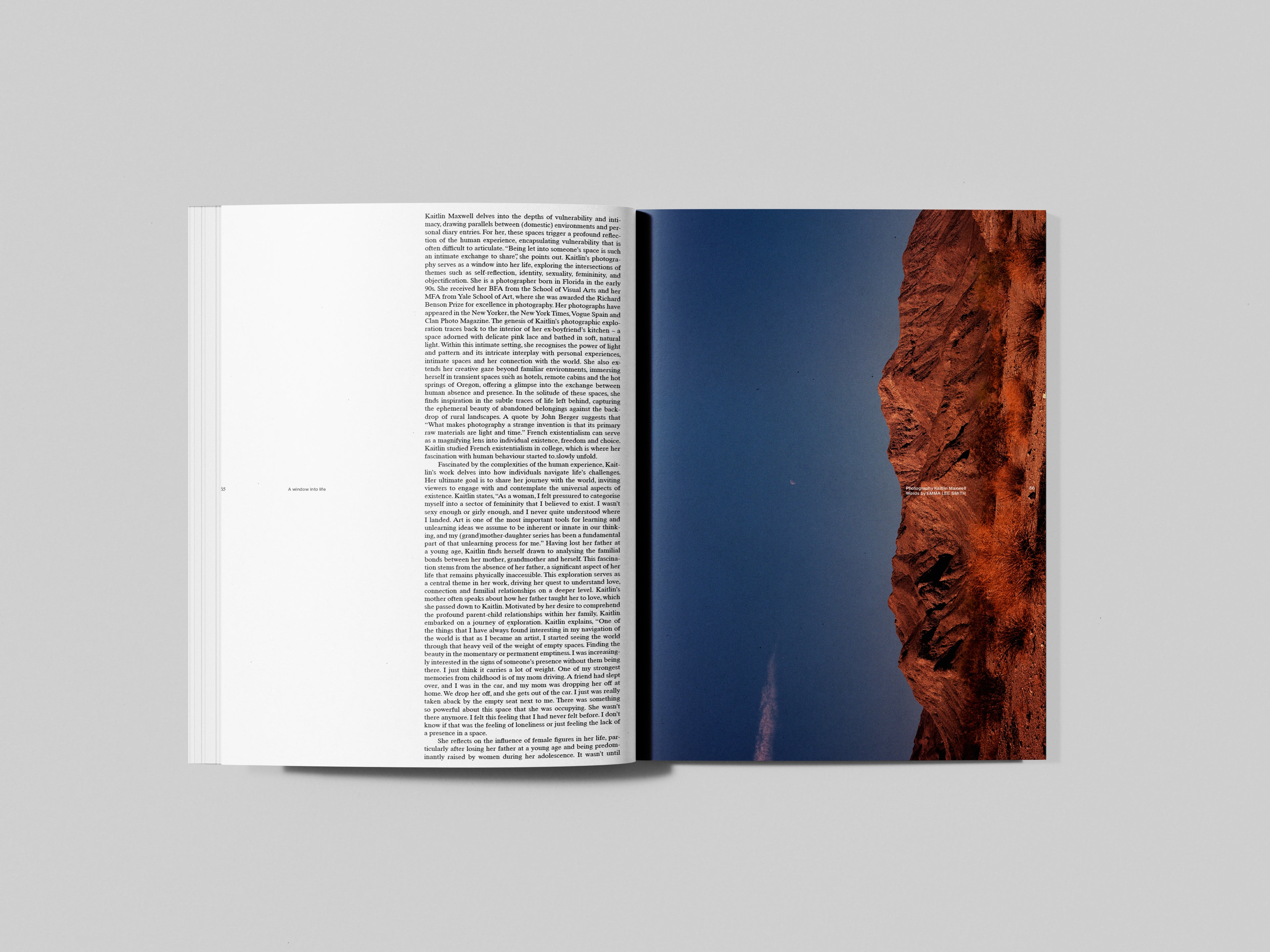 A full Essay on Kaitlynns work & a broader selection of her photography are on beautifully shiny 150g Maxigloss. Printed offset with 5 colors including opaque white and it’s thread stitched to the rest of the book.