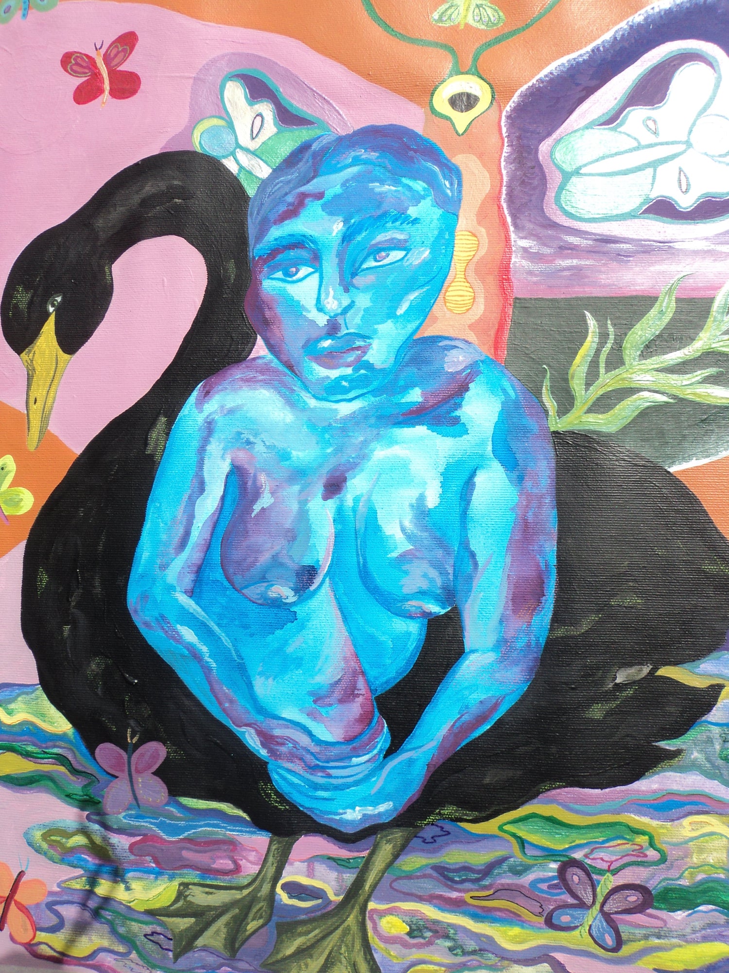 Dolian: My inspiration always circles back to that sense of oneness between nature, animals, and humans. I like to approach it playfully, bringing these elements together in my art. Recently, I've been exploring the balance between masculine and feminine energies within myself, not necessarily gender-related but more about individuality and nurturing. I don't usually consciously think about what inspires me; it's more about feeling an image and starting from there. I've been working on a painting of a female figure surrounded by abundance and nature, but I felt it was getting too pretty. So, I added a big fence to bring some contrast and depth. And, Portugal's environment, those gates and fences, they've become symbolic to me. They remind me of my “island”. You can let people in and out.