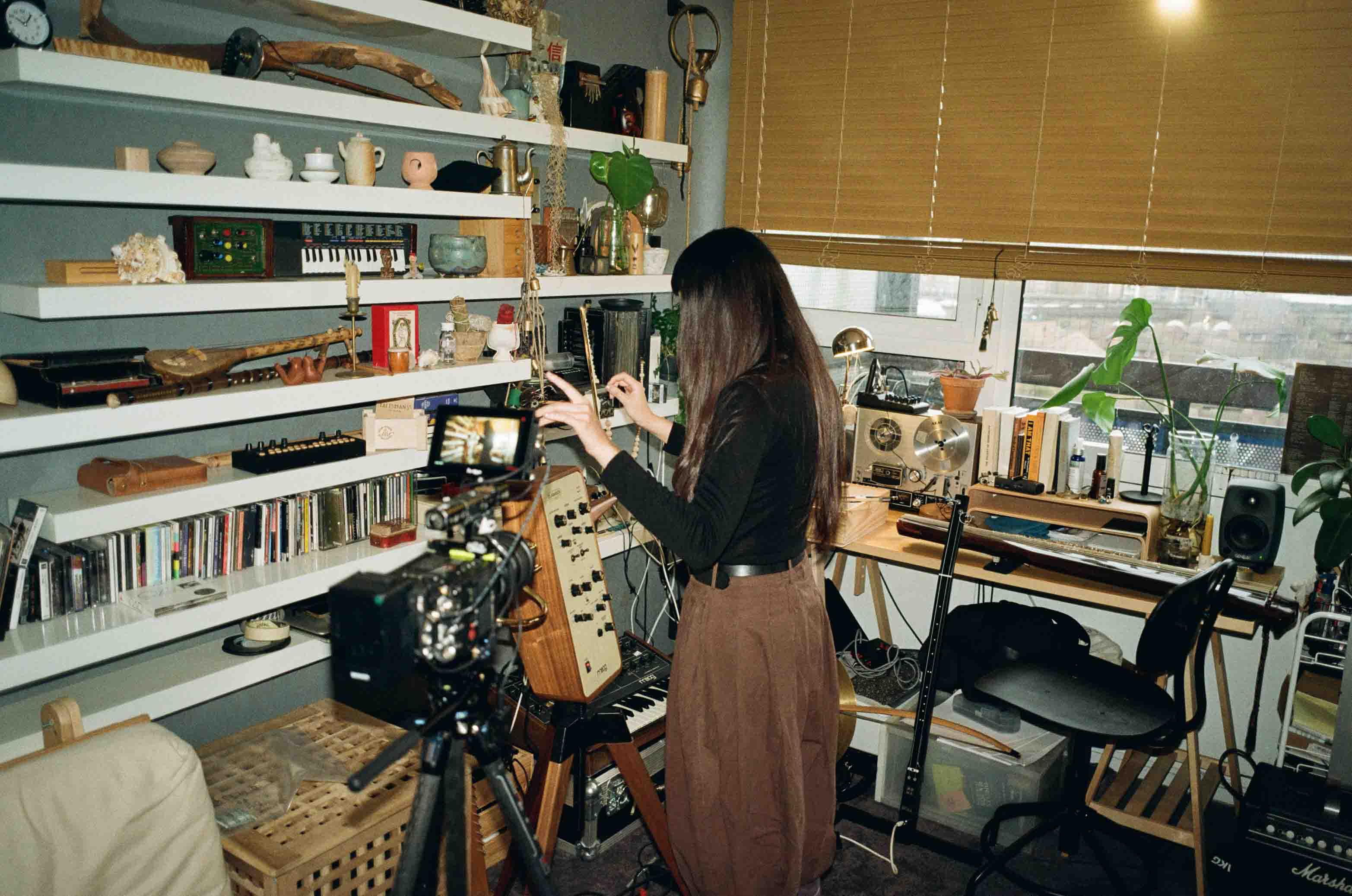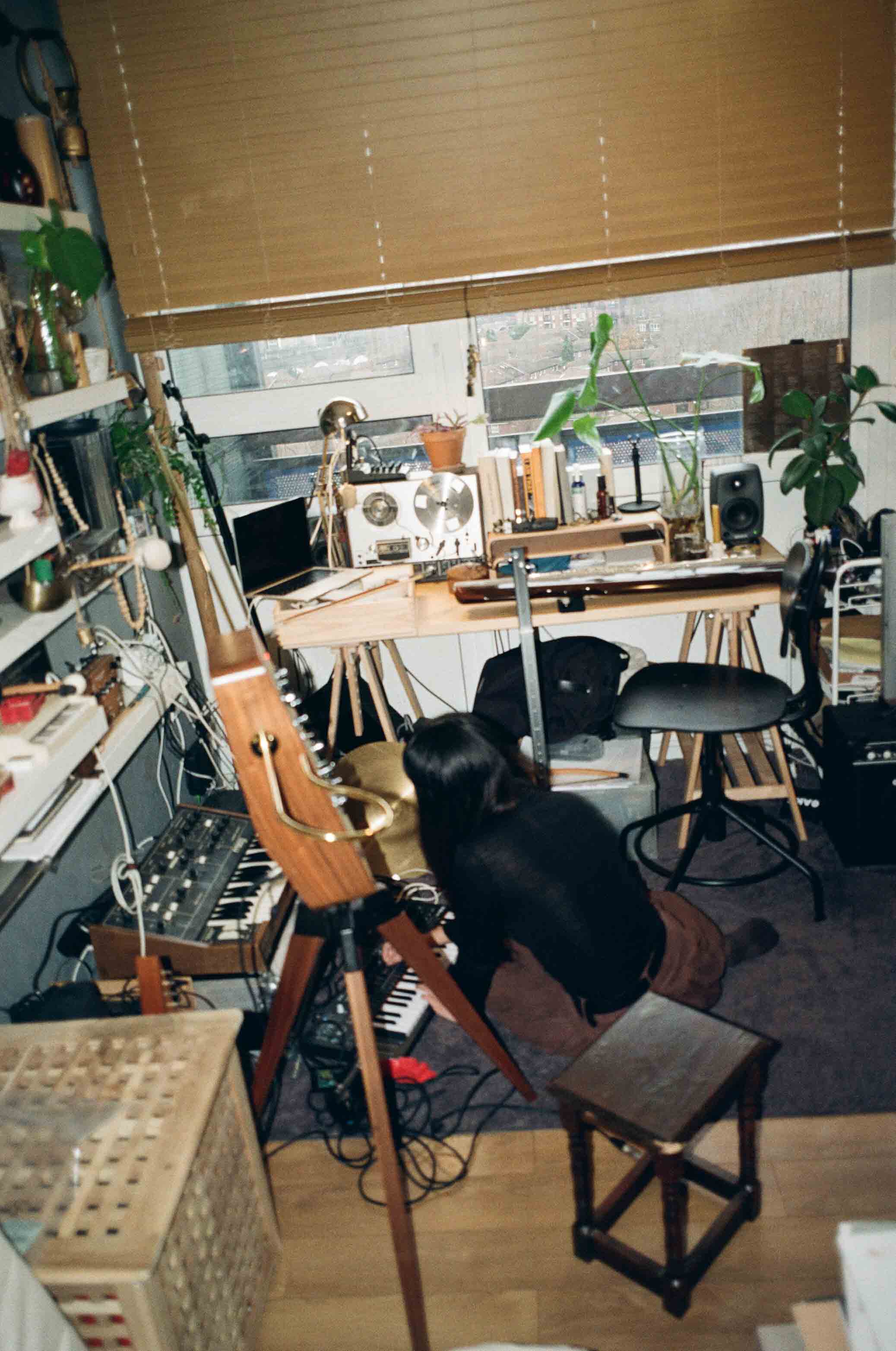 Much of Li’s work is influenced by their mother’s Buddhist way of life, centred around observing emotions rather than amplifying them. This non-attachment approach eventually led Li away from visual art and deeper into music, where a feeling can exist on something as simple as a cassette tape. When we visited, Li was recording a new album and showed us some of their favourite instruments — a theremin, a violin, a keyboard, and self-built devices. The sounds were crunchy and physical, and for Li, staying grounded while playing is essential, allowing the sound to travel and settle into the body. Li’s music moves fluidly through genres and textures, never committing to just one. Listening becomes an act of attention — to sound, silence, and everything in between. You can learn more about Li on their Instagram.